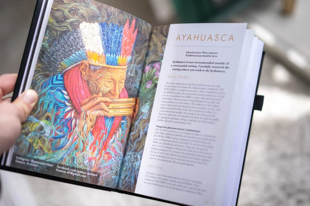 The Portalbook is your compact psychedelic guidebook and psychedelic journal, co-written by those working in the fields of harm reduction and psychedelic research. The journal allows you to document your lessons and experiences, while also learning to improve your knowledge. It includes information on several psychedelic (plant) substances, their effects, and how to prepare optimally for journeys with them. With information on preparing your mind, body, space, and optimally integrate your experiences. It also features donated art from renowned visionary artists.